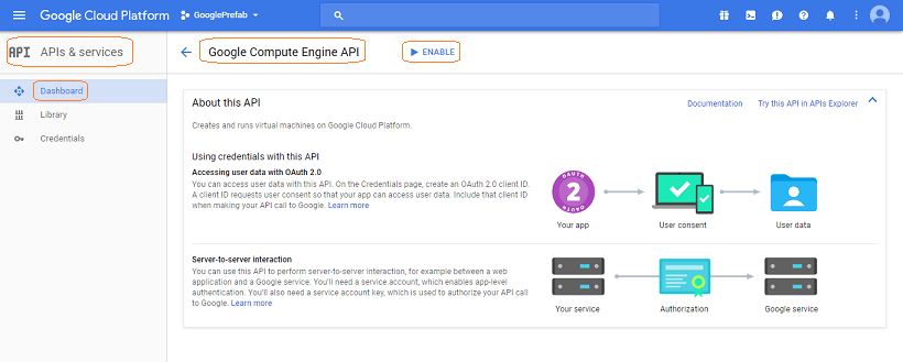 From the API Dashboard ensure that the following APIs are Enabled: