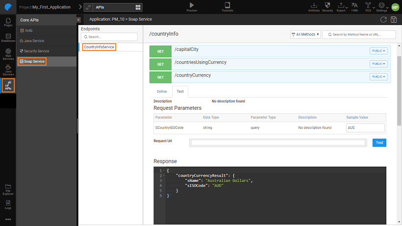 - The user can also test the API from the test tab, by passing values to the parameters and using the TEST button.