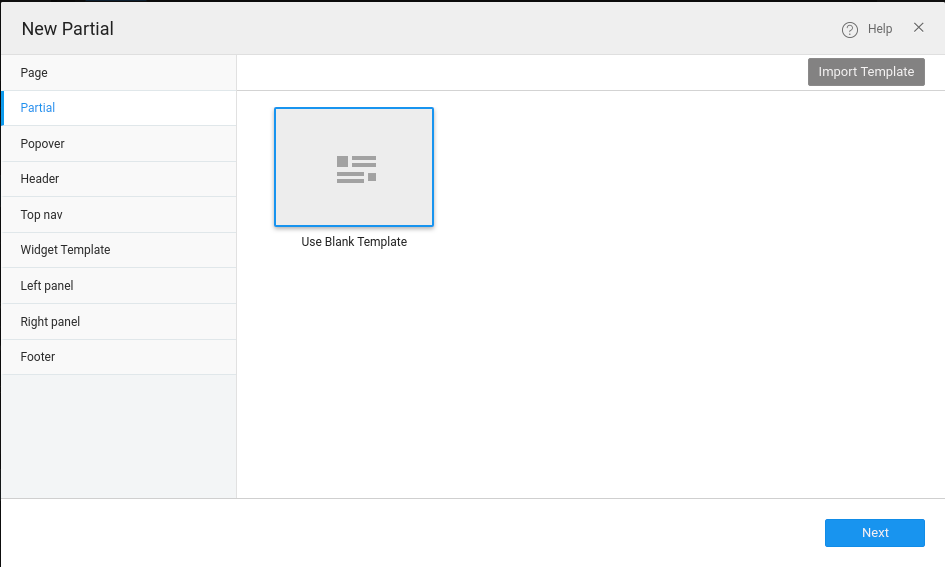 - In allowing us to select a partial for a component/widget. For example, a left panel can include only partial of type leftnav.