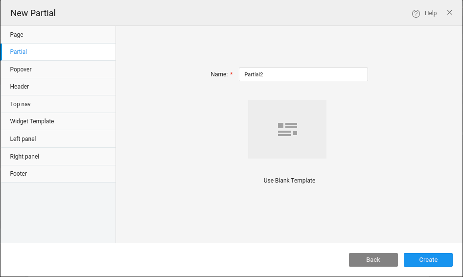 - In selecting a template which is designed for a particular purpose. For example, header template can be used for header type of partial.