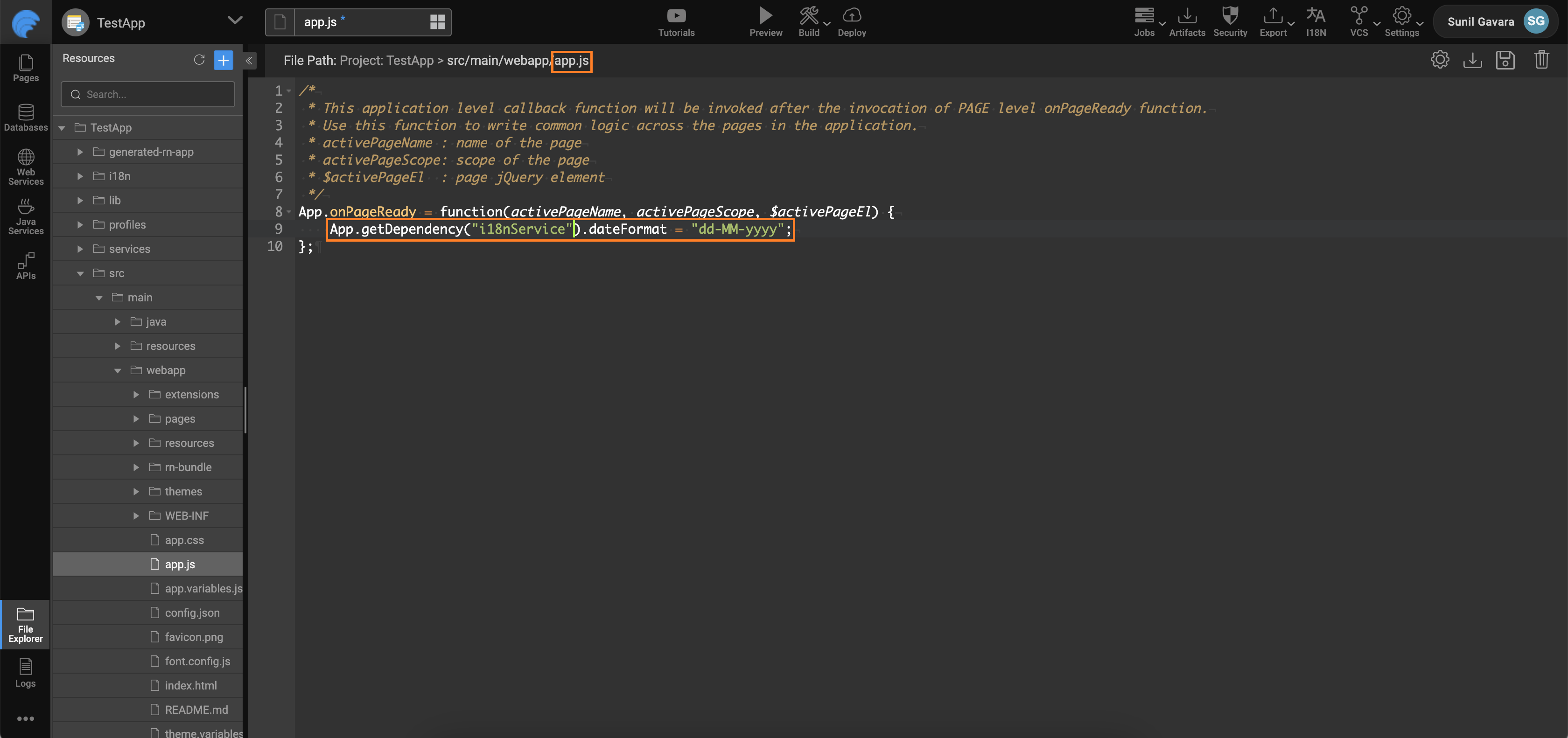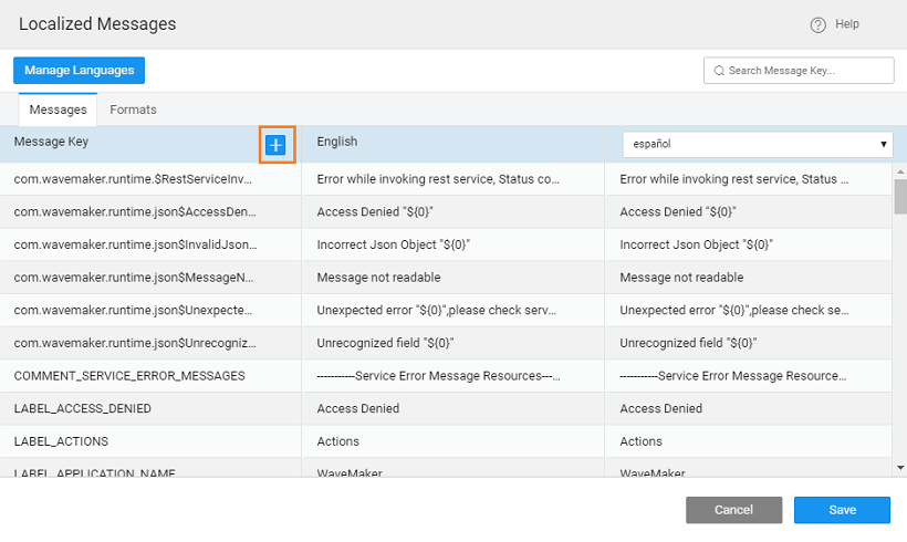When the user selects a Language on your application or when you set the default language of the app from the Project Settings dialog, WaveMaker applies the relevant locale settings to show the messages as per its value for that locale.