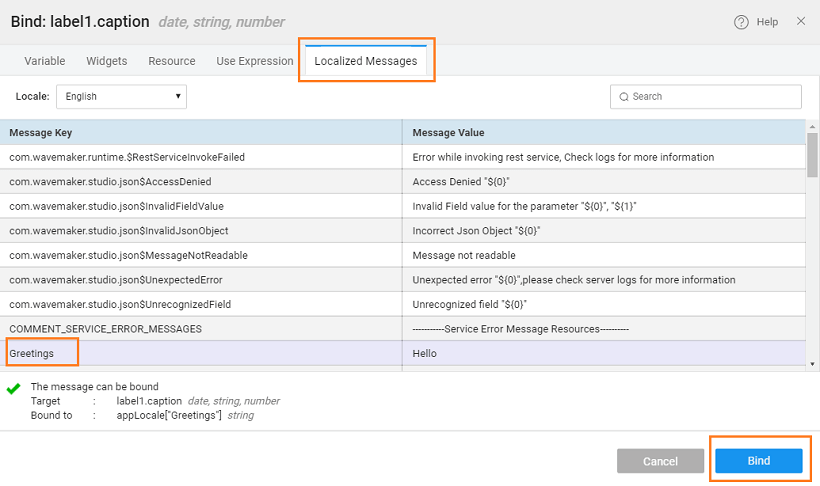 variable created when the locales were added in the previous step. Use a label bound to the Localized Message created in the previous step.