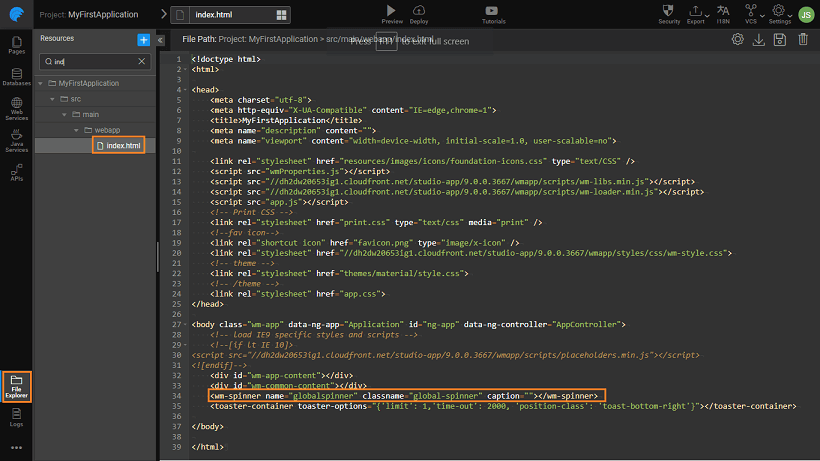 The icon that is displayed at the time of page load or data load are defined by a wm-spinner