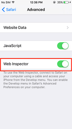 • Turn on Web Inspector.