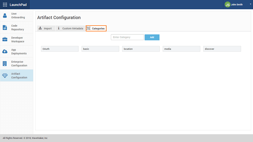 - Categories - As defined by the publisher at the time of developing and/or publishing the Artifacts.