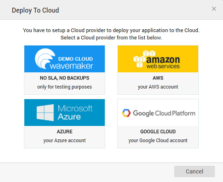WaveMaker Apps can now be deployed to your Google Cloud account. When configuring the Deployment or Release Pipeline for an app, you can choose Google Cloud as the deployment profile for Live (and Stage for WME users) phase.